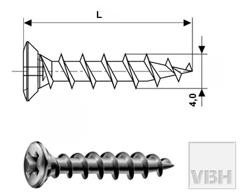Wkręty do PVC : - łeb stożkowy - ocynkowane na kolor srebrny