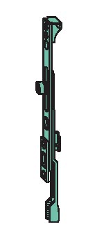 Zakończenie zasuwnicy 180° z możliwością przeniesienia napędu. Zastosowanie w oknach rozwiernych, do których zastosowano zasuwnicę z przeniesieniem napędu. Posiada 1 rolkę dociskową.