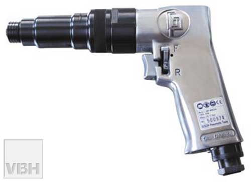 Wiertarka pneumatyczna GISON GP-862 H Przeznaczona jest do przemysłowej produkcji okien, drzwi, mebli. Dane techniczne: - uchwyt: 1/4 '' - zastosowanie do śrub: M6 - obroty L+P: 1800 obr./min. - dugość: 210 mm - waga: 1,15 kg - zużycie powietrza: 0,2 m3/min. Dodatkowe informacje: - sprzęgło poślizgowe - wewnętrzna regulacja momentu dokręcenia
